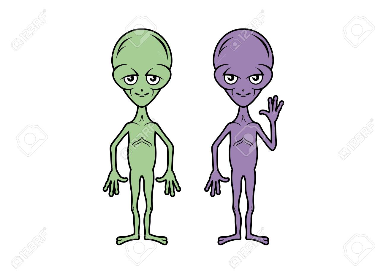Extraterrestrial Couple Vector Icon. Green And Purple Alien Cartoon Character. F