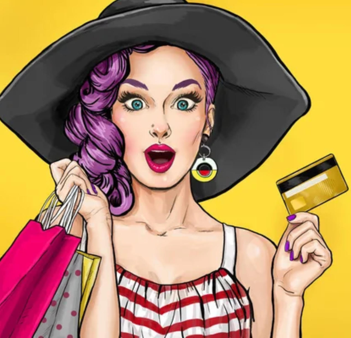 Sexy pop art girl in a wide-brimmed hat drinks her