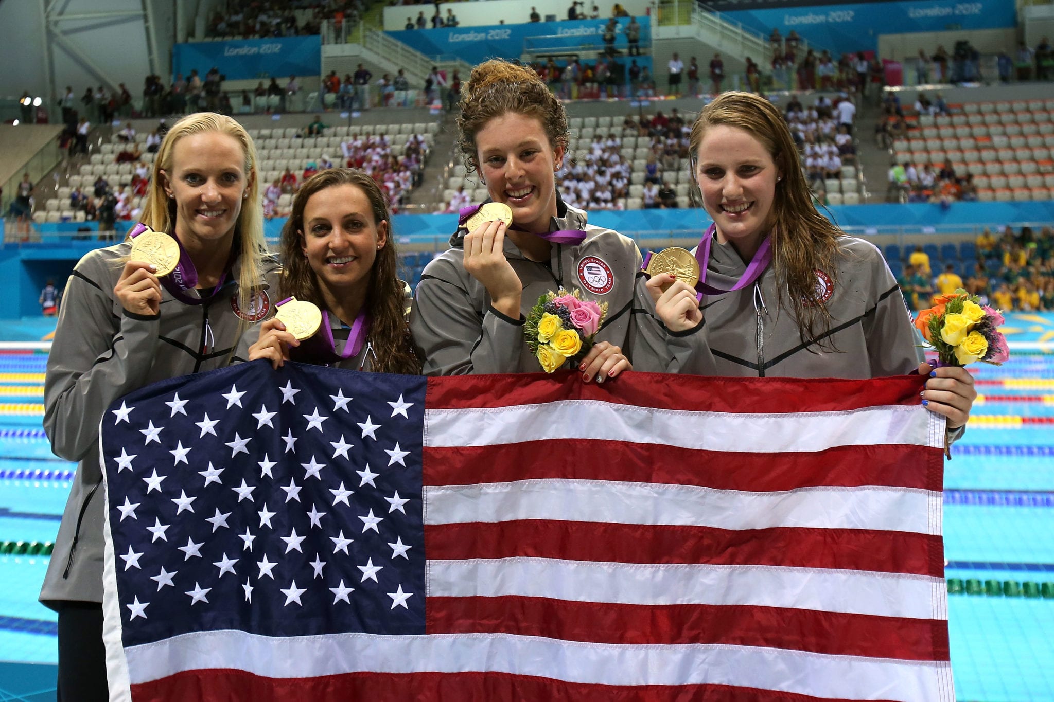 Dana Volmer, Rebecca Soni, Allison Schmitt e Missy Franklin Il Pallonaro